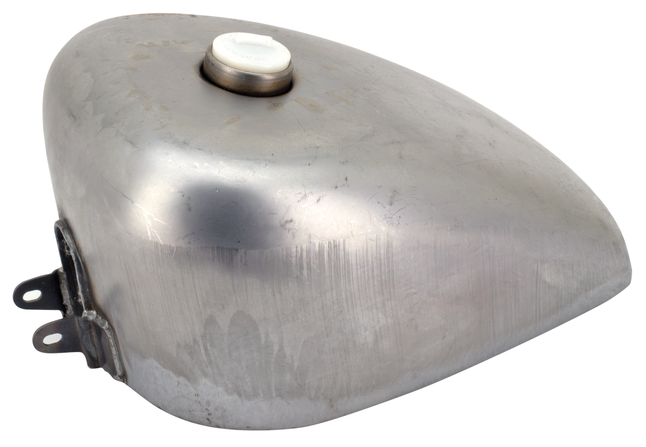 Zodiac's King Size tanks for Sportster have been a popular choice of Custom bike builders for many years. Through the years it has almost become a standard upgrade for those who want the mileage. This classic "King Sportster" gas tank is available with the late OEM style Screw-In gas cap, Lock type as well as the "pop-up" gas cap for 1982-1994 models. Will bolt to the stock frame mounts on all 1979-1994 Sportster, including the Evolution models. Has a larger than stock fuel capacity for extra mileage. Holds approx. 3.1 gallon (11,7L.) and have the fuel valve bung on the right.