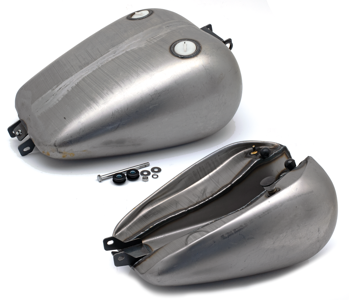 Superb quality gas tank. Ideal for applications where tank mounted speedometer is not wanted. These tanks have an improved mount at the front and back. Available for 1991 thru 2005 carburetor equipped Dyna and FXR models 1984 thru 1994. They are designed to bolt to the original mounts and feature Screw-In type gas caps (3.5 gallon, 13,2L.) (style B).