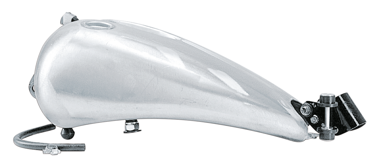 This 2" stretched Sportbob tanks with dash mount, will give your Sportster the long slippery stretched look as found on our other stretched tanks. Tanks have an improved rubber mount system which isolates the tank from the engine vibrations. Designed to bolt to the original mounts and accept the 2-light or 3-light dash with large FL style speedo. Fits Sportster models 1982 thru 2003. Holds approx. 4 gallon (15,1L.), which is almost twice as much as the original tank.