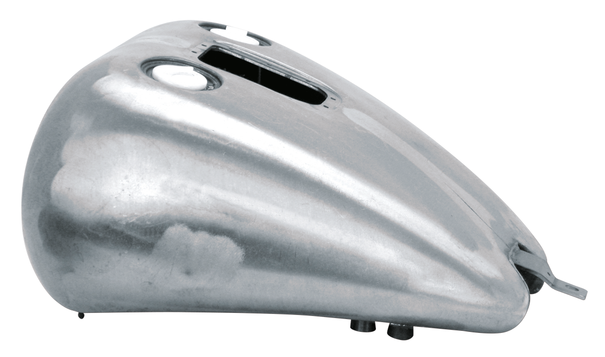Custom gas tanks with dash mount for Twin Cam Softail. Can be used with the stock or stock style seats. Made from heavy gauge steel for years of leak and trouble free riding. Tanks are available for use with OEM style Screw-In gas caps and the gauge equipped OEM left side cap. Both styles are available for carburetor and EFI models. Tanks take approx. 5.1 gallon (19,3L.).