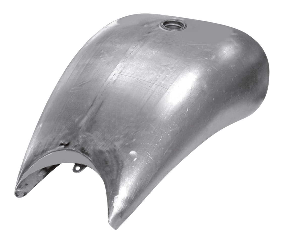 Stretched gas tanks that bolt straight on to the stock mountings and include a special rear mounting bracket to replace the stock one. Tanks are approx. 18" (46 cm) wide and an impressive 25" (64 cm) long and take 7 Gallon (26.5L.) of fuel. Installation requires the seat to be customized or use of a custom seat. Tanks for carburetor equipped models are smooth top, those for EFI (Electronic Fuel Injection) come complete with a raw steel custom dash. The same dash but with a flawless chrome finish is available separately. Tanks for EFI models take the Original Equipment fuel pump. All versions take the stock screw-in style gas caps (Style B).