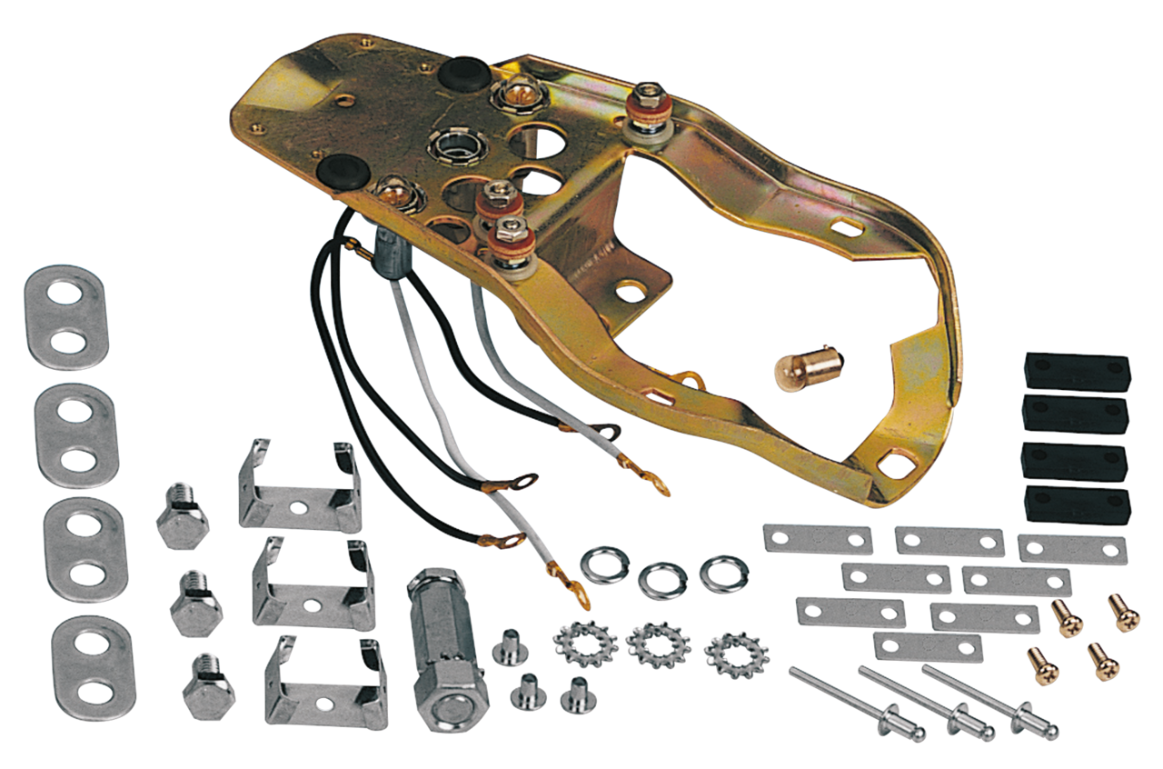 Includes a complete set of mounting hardware, wiring and sockets. Mounts our three-light dash to Fat Bob tanks (OEM 70934-59).