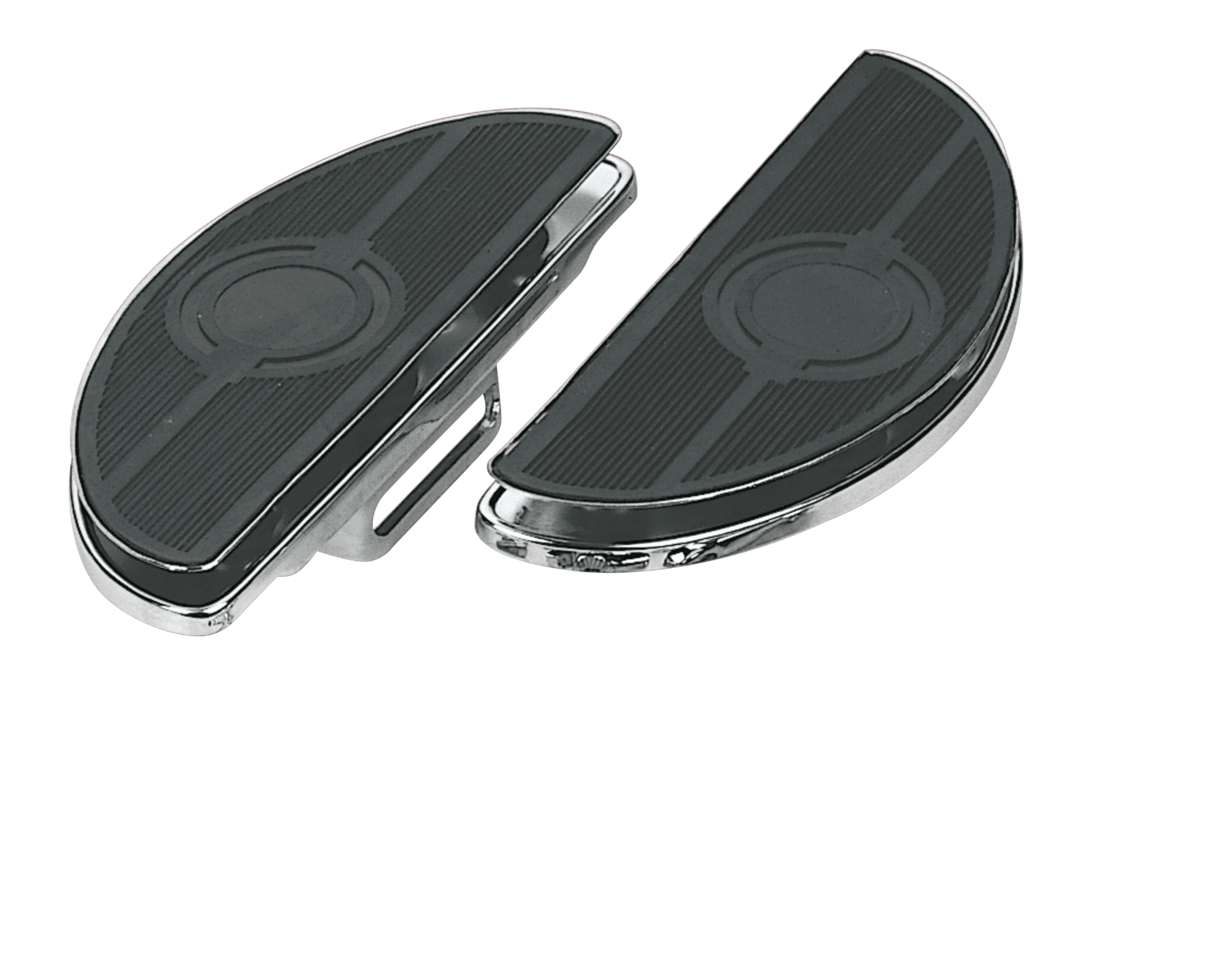 An innovative design which provides a versatility lacking in other floorboards. The forged and chrome-plated mounting brackets permit a full seven inch fore-aft adjustment along with angle and height adjustability. The use of rubber bumpers ensures a comfortable ride and no vibrations to your feet. Fits all 4 Speed FXWG models from 1980 thru 1986, all Softail models 1984 thru 2017 (except Heritage and Fat Boy) and all Dyna Wide Glide models 1990. However, they can be installed on any late-model motorcycle with clevis-style footpeg mounts.