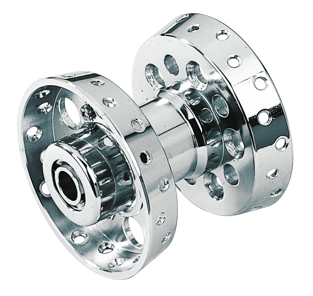 Show-chromed wheel hub. Fits all Big Twin, front and rear 1967-1972. Replaces OEM 43540-67A, but bearings and seals must be ordered separately.
