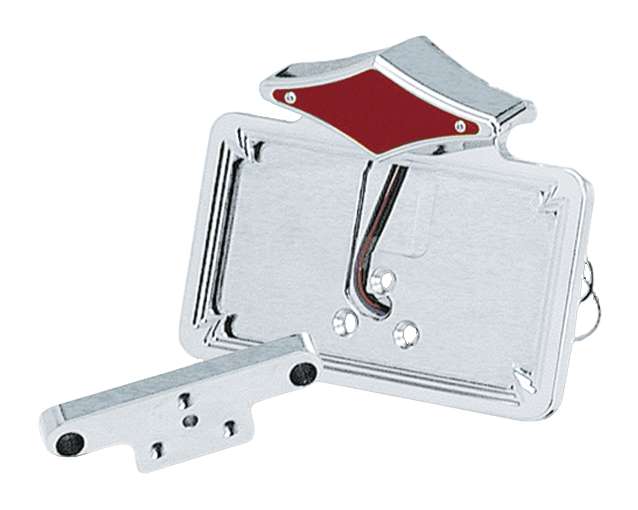 These "Design" LED taillight and license plate brackets are the ultimate in design and function. Both the side mount and rear mount take US size 10" x 7" (102mm x 178mm) license plates, are machined from Billet aluminum and then chrome plated for a perfect finish. Other features of LED lights are the use of less electrical power and live longer than common bulbs. The Diamond Style LED light that comes with these brackets is pre-wired for brake and taillight use and also has a provision for license plate lighting. Side mount license plate brackets bolt to the rear axle, and are available to take a horizontal or vertical license plate. The vertical brackets are available with normal flat license plate frame or in a curved version. Fender mount license plate bracket comes with your choice of hard rubber fender mount cushion, or solid block mount.