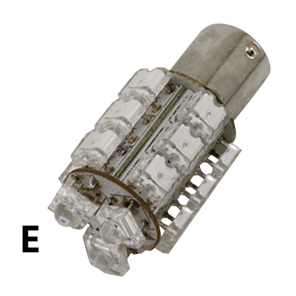 Now you can convert almost any taillight, turn signal, marker light and numerous other armature from old style incandescent into state of the art bright shining LED. These LED conversion "bulbs" simply replace the bulb, and that is it! No electronics to install as everything needed is build into the socket. LED lights use only a fraction of the power normal bulbs do and live much, much longer. These 12 Volt LED replacement bulbs have a normal BA15 socket. BA15S versions are to replace single filament bulbs, whereas BA15D version are to replace dual filament bulbs, usually found in stop/taillight combinations and turn signal/running light applications. Available in clear, red and amber. Red and amber LEDs are great when used in combination with clear or smoke lenses. Sold each.
