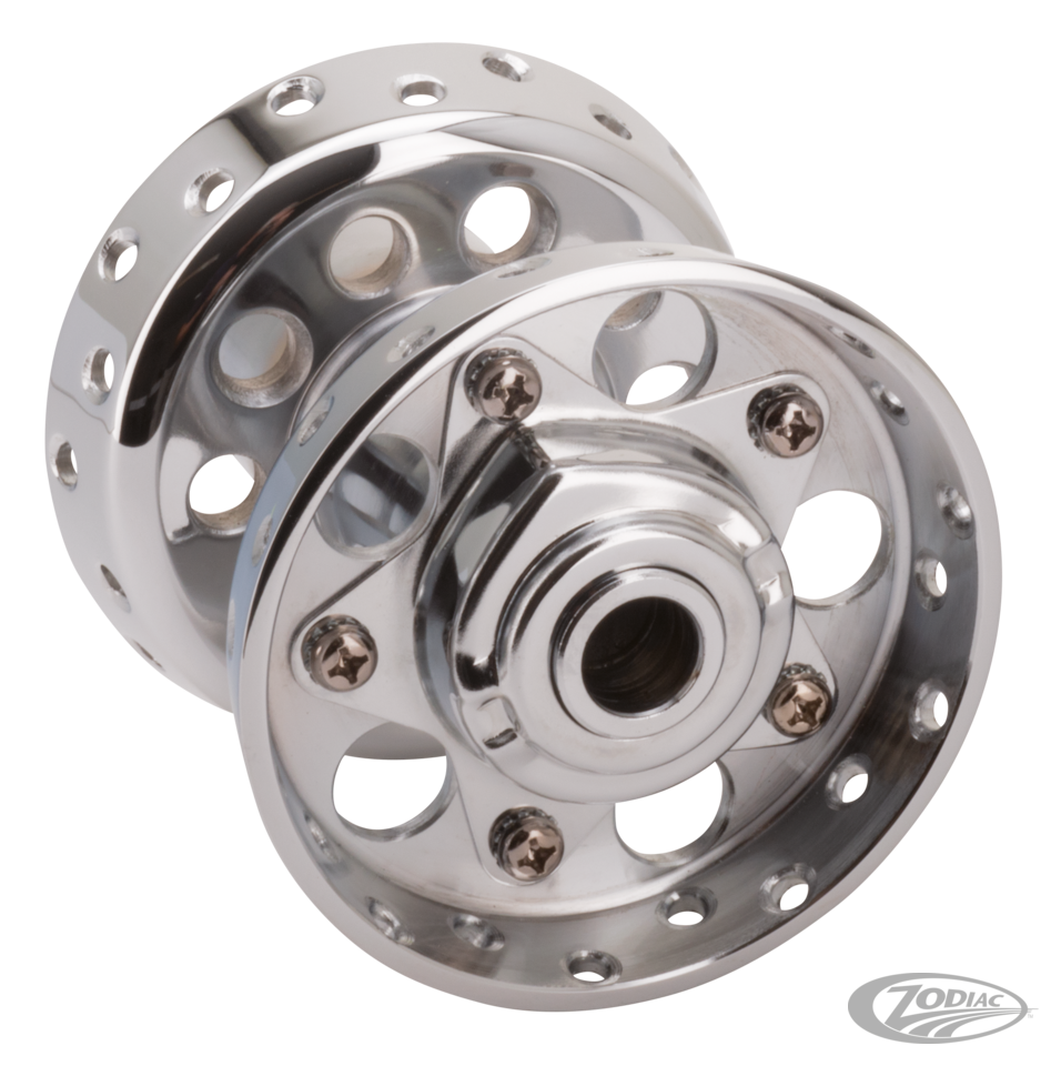 These spool style hubs are engineered from the ground up to duplicate the original parts dimensions and appearance, but with the added reliability of Timken-style bearings and conventional oil seals. Don't confuse this quality part with other manufacturers replacement hubs or those questionable hub conversions you read about. No expense is spared in the design of this new part to give you the finest Star Hub money can buy. Features include extra-thick spoke flanges, beautiful Chrome plating or black coating, adjustable bearing pre-load and Timken-style bearings. All hubs come complete with bearing pre-load set at the factory.