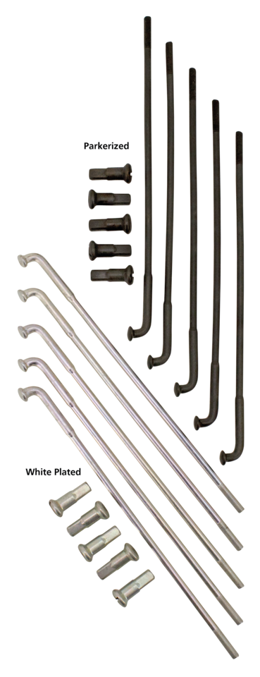Spokes as used front and rear on models with interchangeable wheels and 45CI Solo models rear. Exact duplicates, so great for restauration. Sold in sets of 40 spokes and nipples.