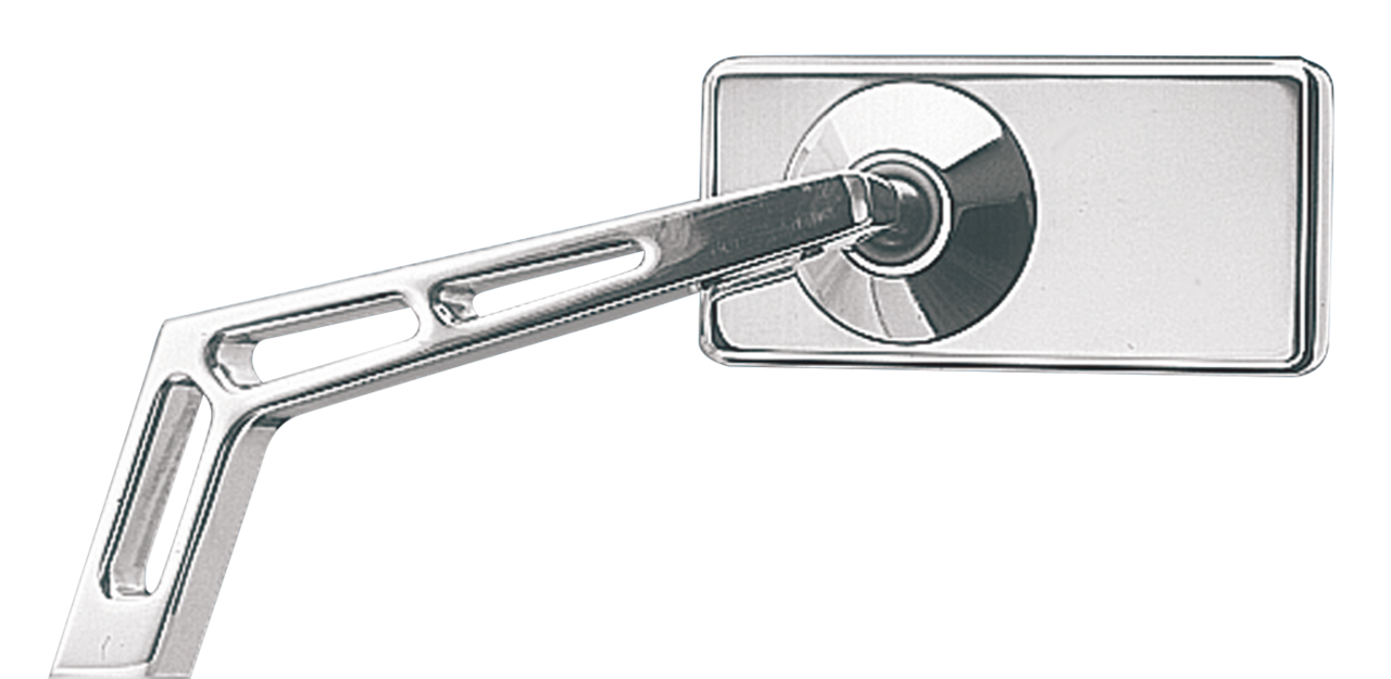 Features Rectangular mirror head and angled Cut-Out arm. Mirror sizes: Head 4"x2" (10cmx5cm), Arm 6 1/2" (16.5cm) long.