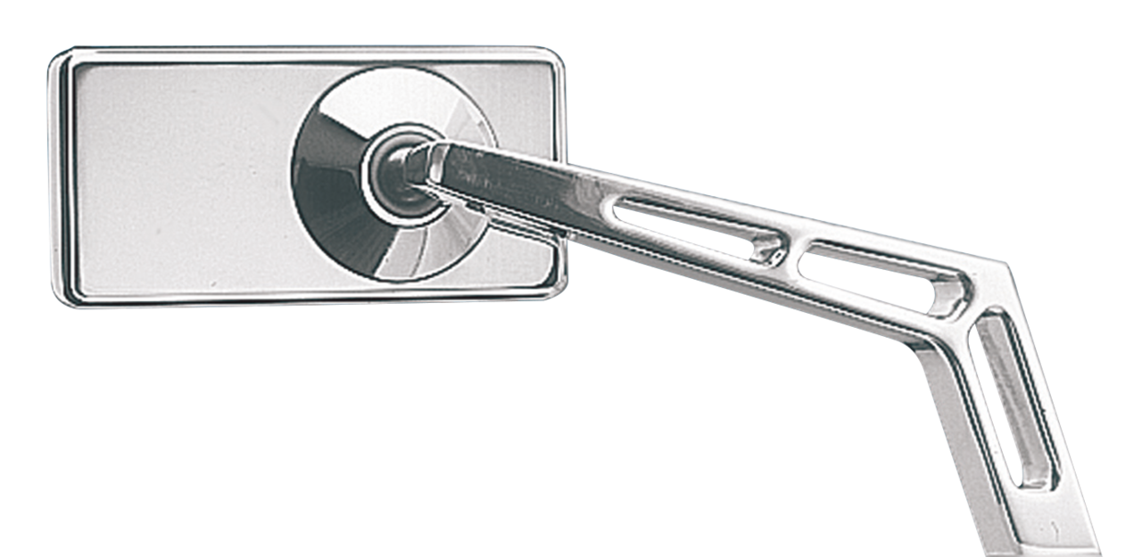 Features Rectangular mirror head and angled Cut-Out arm. Mirror sizes: Head 4"x2" (10cmx5cm), Arm 6 1/2" (16.5cm) long.