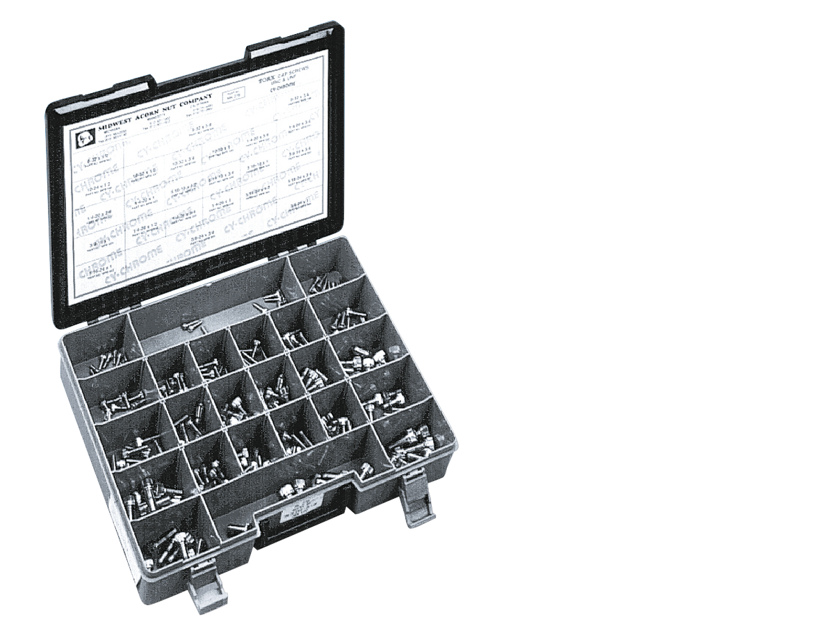 Complete assortment of Chrome plated grade 8 Torx head screws. Torx head screws are the ultimate replacement for Allen screws, they provide more contact area between the bolt and the key which eliminates the chance of damaging the socket head. The assortment box contains 240 pieces (sizes as listed below) in both coarse (UNC) and fine (UNF) thread. Each size can also be ordered in 10 packs as listed.