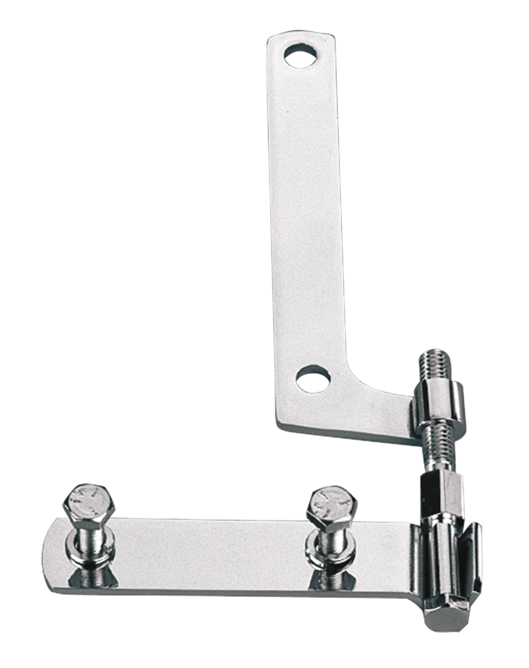 Chrome plated adjusting kit, designed to fit 1936 thru 1964 transmission cases. Allows you to precisely adjust and secure the transmission. Can be used with stock or custom transmission case. Recommended when open belt-drive is installed (OEM 47720-36).