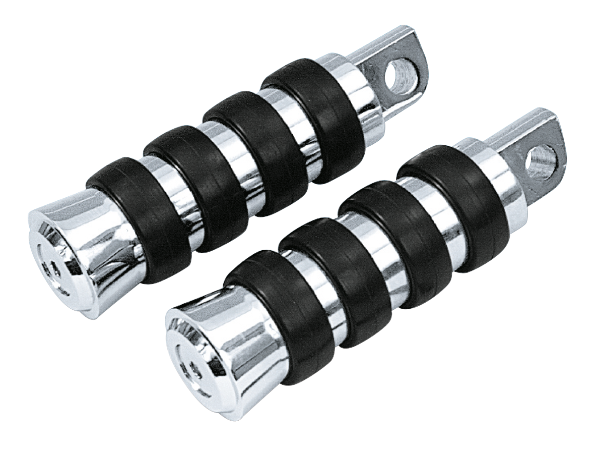 Chrome plated foot pegs with wide rubber bands that not only look good, but are very functional too. The rubber bands stop your feet from slipping off the pegs, absorb vibrations and guarantee a comfortable ride.