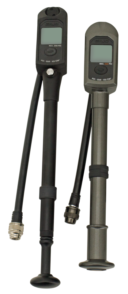 Billet aluminum air pumps with a LCD digital gauge that can be set to read pressure in PSI, Bar and KG/CM2. The inflator hose is foldable and swivels 360 degrees for easy use. The hose clips to the pump barrel for safe and easy storage. These high-pressure pumps can also be used for most air shocks and air assisted front forks.