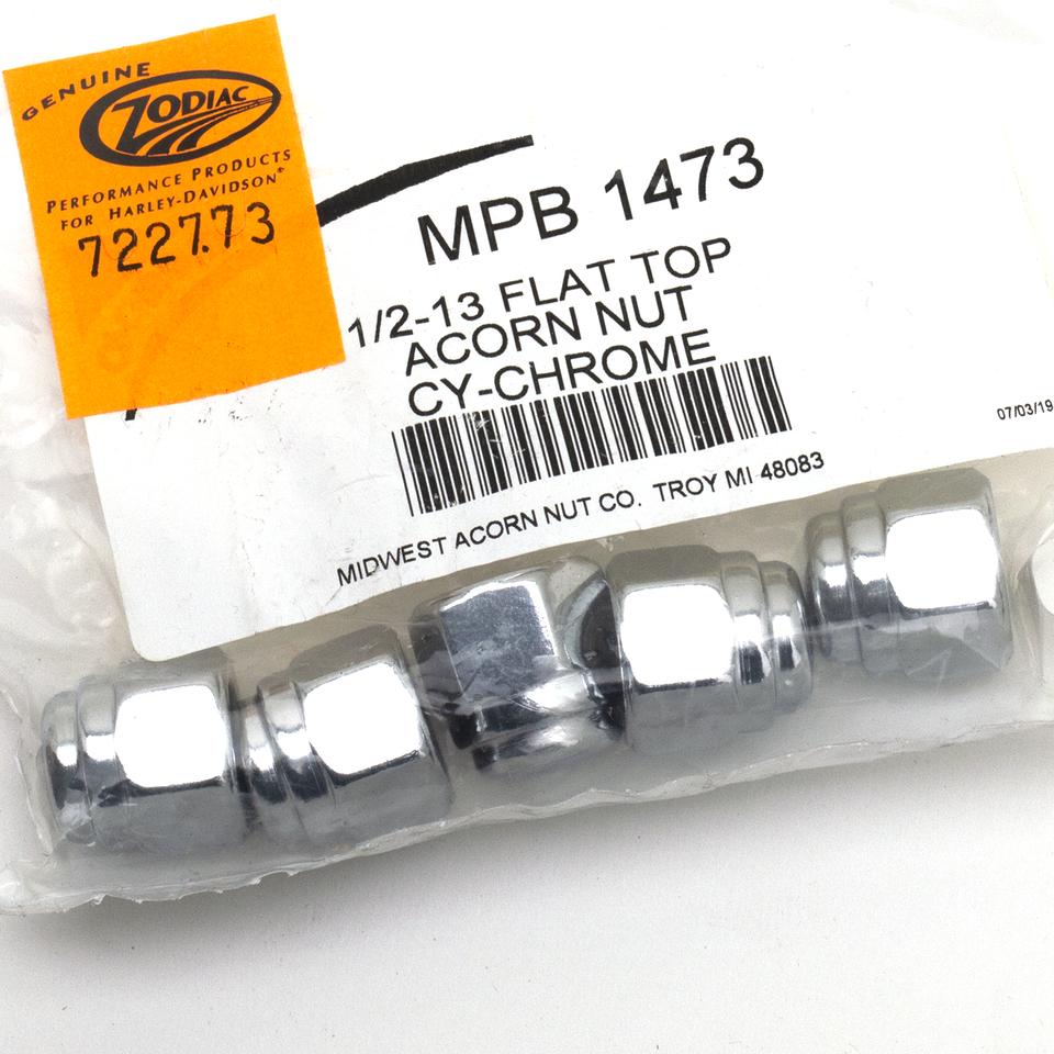 Complete assortment of 120 pieces chrome Flat Top Acorn nuts of sizes as listed below. All sizes are also available individually in dealer 5- or 10 packs.