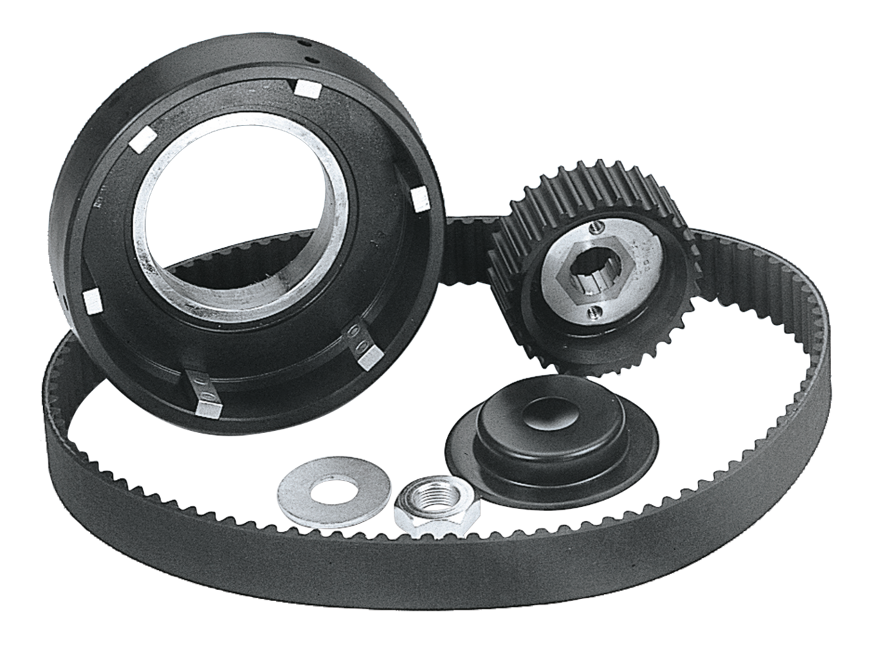 Primo's "Brute II Extreme" belt drives feature the ultra severe duty 1 1/2" wide 11mm pitch Kevlar polychain belt. These drives are designed for enclosed primary fitment, either within aluminum primaries or within so called "tin" or stamped steel primary covers. All kits can be used with an OEM style or aftermarket dry clutch. Belt drives for 1936 thru 1964 models feature a 33 tooth front and 49 tooth rear pulley and are available for use with 1936 thru 1954 style tapered engine sprocket shaft or 1955 thru 1964 style splined engine sprocket shaft. Belt drives for 1965 thru 1984 feature a 34 tooth front and 49 tooth rear pulley and are available in your choice of kickstart-only or kick- and electric start.