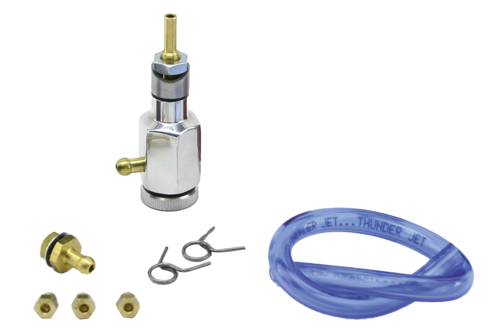 Thunderjet's patented third fuel circuit has a built-in air correction system that permanently solves the problem of poor midrange performance and/or a too lean condition on the top end. The system operates over a wide range of altitude and atmospheric conditions and can be installed on all S&S Super B, D, E and G models as well as Bendix/Zenith and Keihin carburetors. Available in Red, Blue or Black anodized versions.