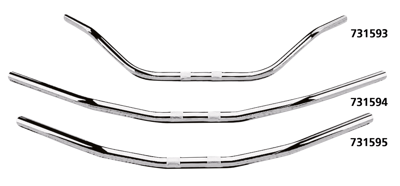 Made in Germany handlebars for 1970 and later Harley-Davidsons except XG Street models.4-Hole style bars are designed to route the handlebar switch wires through custom risers wit hollow studs. Throttle-By-Wire style bars are ready to take the electronic throttle control as introduced in 2008 on Touring models.
