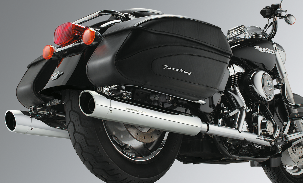 You can now have exactly the same mufflers as SuperTrapp supplied to "The Factory" for many years. These Super Elite slip-on mufflers are the most popular design on the market today. They feature race-proven mechanical baffles for increased torque and horsepower. To eliminate muffler body bluing SuperTrapp equipped these mufflers with internal baffle heat shields. Mufflers are expertly finished and chrome plated. Mufflers for FLH and FLT series models come with a SuperTrapp logo on either left or right side. You can use these on both sides of your bike, so it is up to you if you want to install them with the logo's visible or not. Also available for FLSTS Springer Softail models 1997 thru 2003 and FLSTC Softail models 2005 but these can only be installed with the SuperTrapp logo in sight. Elite Series mufflers are sold in pairs and are very easy to fit as they make use of the OEM brackets and headers. Super Elite series end caps are not included and must be ordered separately.