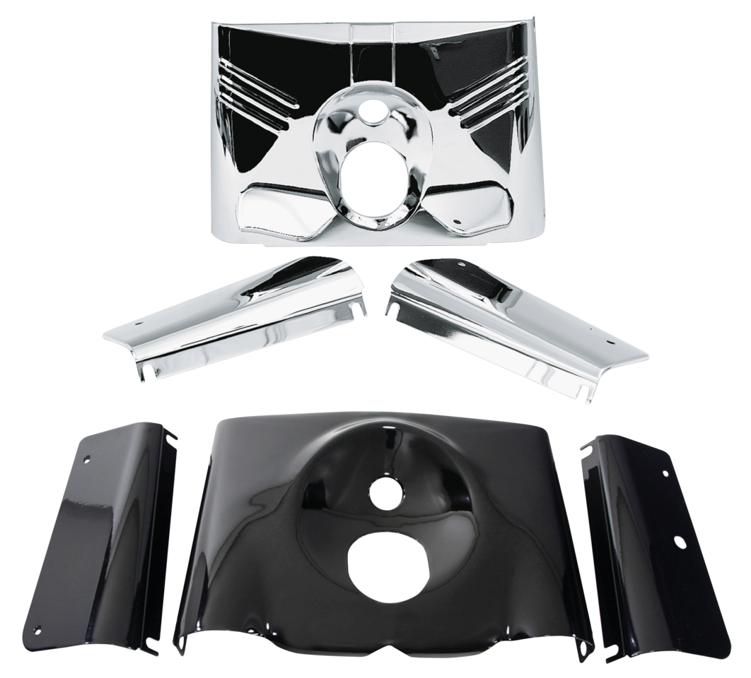 Fork cover kits replace the stock satin fork covers on FL Softail and are available with the three ribs left and right of your headlight, like stock, or completely smooth. Use stock hardware or order hardware kit separately.