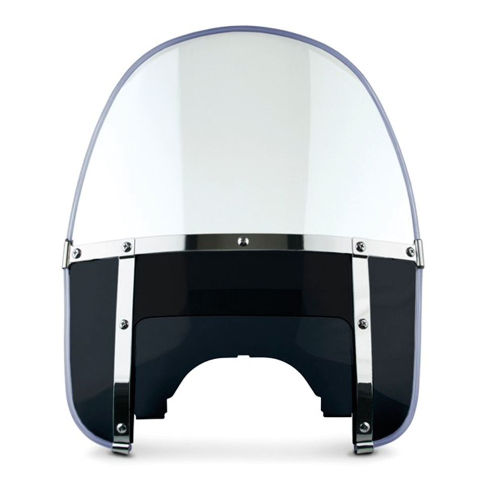 The Beaded Heavy Duty is an authentic three-piece beaded construction. The beaded edge that has been applied in a modern way without glue to reduce yellowing and remain good looking for many years. The Beaded Heavy Duty uses FMR hardcoated Lexan polycarbonate and is 21 1/4" (54cm) high and 22 1/2" (57cm) wide. Windshields feature highly polished chrome steel outer hardware with non-glare black epoxy coated steel inner straps. Complete windshield kits come with the required mounting hardware. Standard round top windshields have an adjusting window with a round cutout. The 1960-1984 style windshields have, as standard in these years, a notched adjusting window. The 1949-1959 style windshields have a peaked top and cupped adjusting window. When you also want to create some convenient up-front storage we have a Holdster windshield bag available as an accessory.