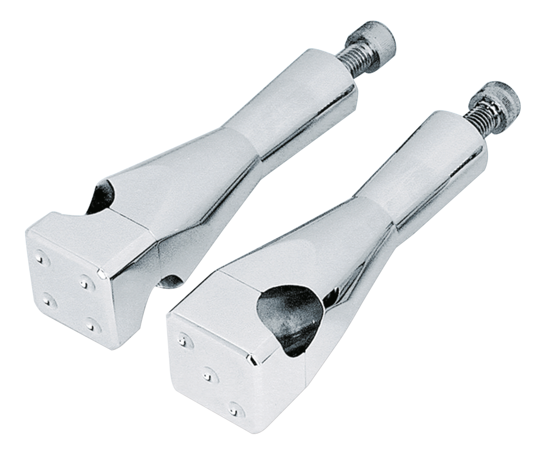 The dice are back! These Lucky Seven risers are tastefully designed and give a distinct Custom look. They are machined from billet aluminum and have a polished finish. The handlebar top clamps feature hidden-mount hardware for that sleek look.