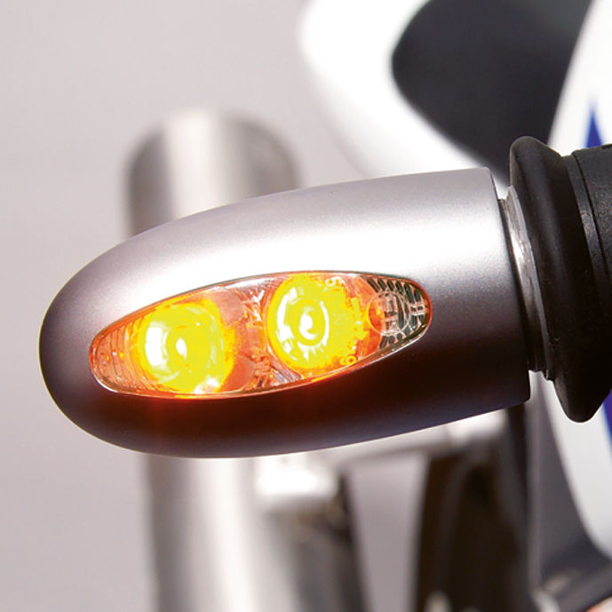 Kellermann's stud mounted turn signals feature EC approved white lenses, a 12 Volt 21 Watt amber halogen bulb and M10x1.25x20 stud mounts. A perfect match with Kellermann's handlebar mounted indicators. Sold each.