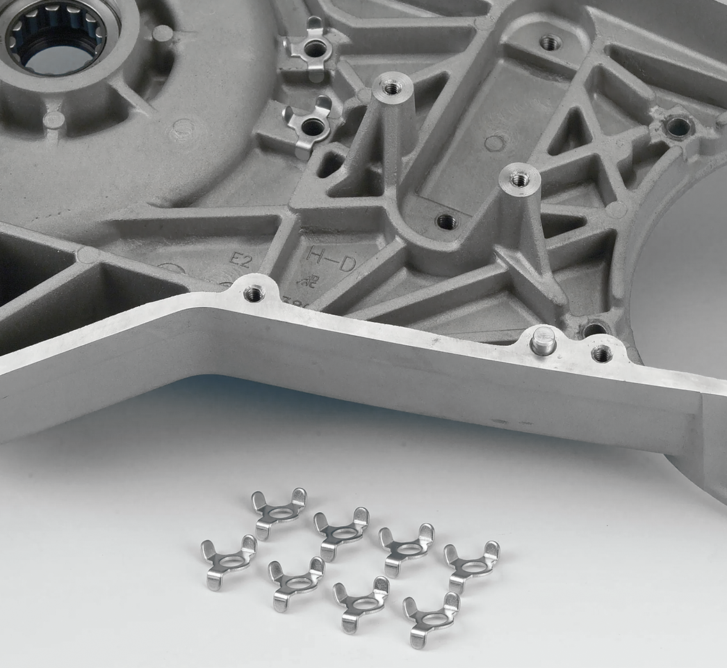 When mounting your inner primary never re-use lock tabs as this can cause major damage to your expensive motorcycle. These low cost tabs fit most inner primaries from 1985 thru 2006, except 2006 Dyna.