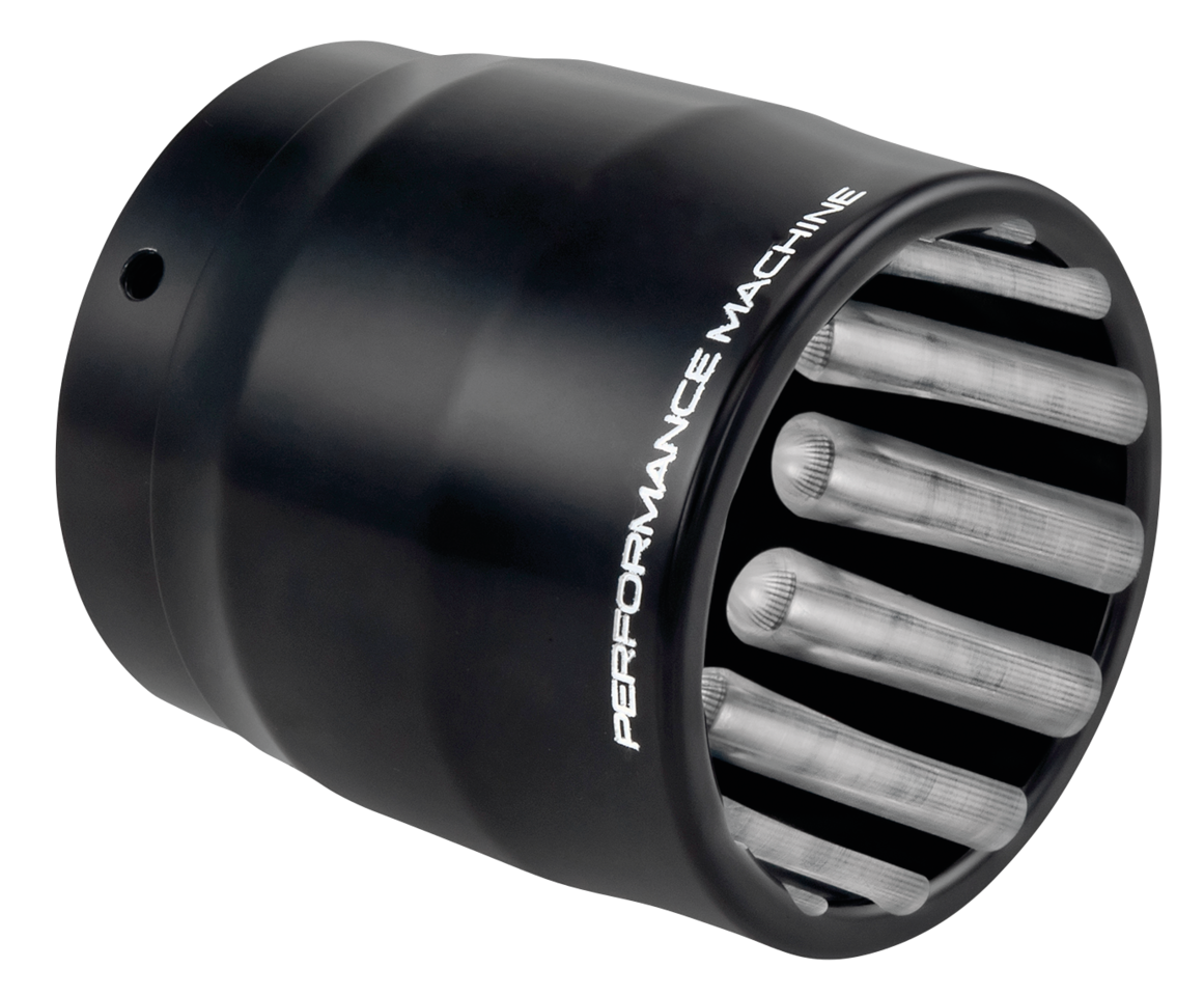 Performance Machine's Elite exhaust tips are made from billet aluminum, turned into works of art. Four cutting-edge designs including the Clean, Tech 10, Slash and Sweeper will slip-on to Screamin' Eagle, Supertrapp and Kerker pipes in 3 1/2" (89mm) or 4" (102mm) diameter. PM tips will also fit Bassani short and long Megaphone applications. Each tip features machined cuts and grooves, giving each round depth and dimension both inside and out. No matter what angle you find yourself admiring these tips, they're definitely sexy. Tips are embellished with the Performance Machine logo and available in chrome and black with a Contrast Cut Finish. Sold each.
