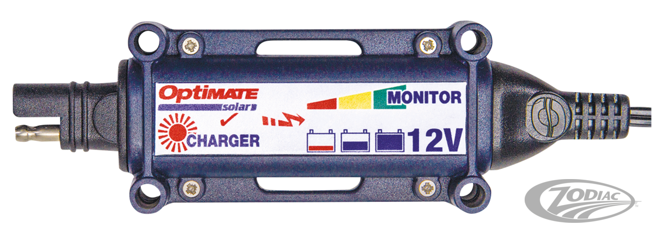 The smart 24-7 battery care solution powered by the sun. Includes a 10 Watt weatherproof solar panel and a smart OptiMate Solar combination charger-monitor controller, that charges & maintains a 12V battery during the day and monitors and displays the battery state of charge at night. The solar panels wide spectrum poly-crystalline technology generates power even in low light. The OptiMate controller converts into high current pulses more effective for charging and maintenance of a standard, Gel, AGM or EFB 12V battery. At night the smart controller turns into a battery monitor, providing battery information every 3 seconds on the easy to read 3 LED panel. Saves flat batteries from as low as 1V with its unique pulse action. Fastest charge is delivered as 'smart charge' control selects pulse or continuous charge according to sunlight strength. Intelligent maintenance continues the next day if battery retained charge overnight, otherwise the program reverts to OPTIMIZE step. Battery condition is displayed every 3 seconds. Ready indication for STD and hi-performance AGM batteries. Draws less than 0.5mA during monitor mode. Automatically switches to CHARGE when solar power is sufficient. The OptiMate charger-monitor controller is separate to the solar panel and can be placed close to the vehicle or battery so that charge and maintenance progress can be easily followed. The solar panel must be mounted and angled to receive direct sunlight. The reach / distance between battery and panel is 124" (315 cm). Outer dimensions, including corner mount brackets are: width 11 1/2" (29.3 cm), height 12 3/4" (32.5 cm), depth 1" (2.6 cm).