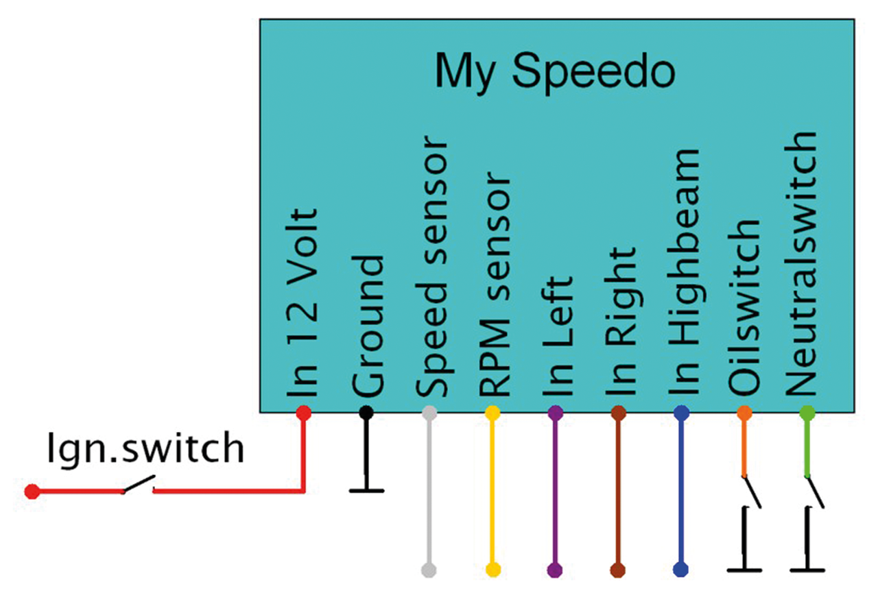 My Speedo is a fully programmable speedo that is displayed on a graphical LCD screen. It contains an easy to connect to interface module that takes the input from the speedo and tacho signals, as well as the turn signals, high beam, neutral and oil pressure wires. All information is displayed on a 400 x 240 pixel touch screen display. All elements like speedo, revs and odo values, as well as the warning "lights" and background can be fully customized with any font and graphic, and can be placed at any location on the screen with the free downloadable Nextion editor. Outside of display module measures 95 x 47.6 mm with a screen area of 69.6 x 41.8 mm and is intended to be build into a dash, like we did on our 50th Anniversary Golddigger custom bagger.