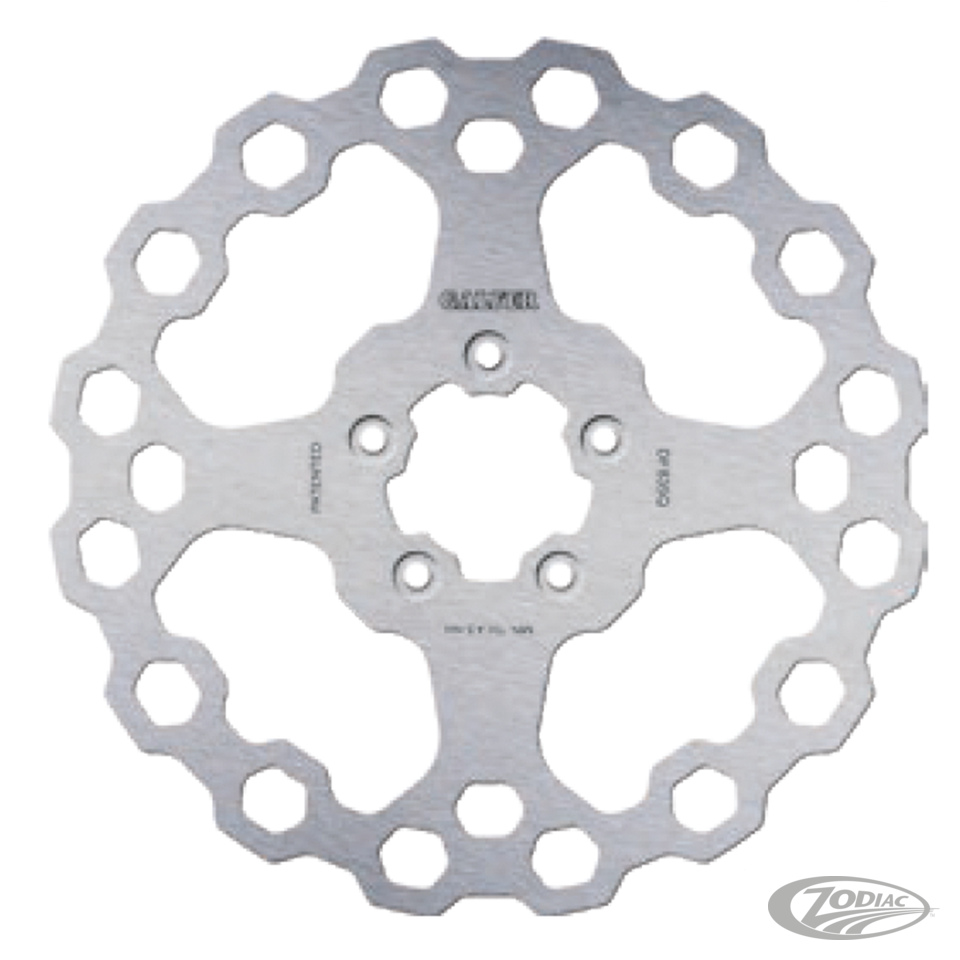 Galfer brake discs for use with stock and stock-replacement calipers. Full floating discs have stainless steel outer bands with black coated steel centers, held by and clear stainless floating elements. As with every brake disc it is strongly recommended to install new brake pads with a new brake disc.