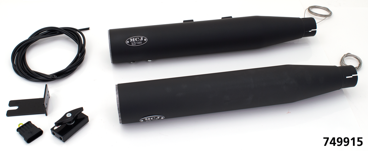 E-approved slip-ons with an adjustable exhaust valve that allows you to tune the sound of your bike the way you like it, but still get back to what is legal. These exhausts come complete with a manual operated adjusting lever that can be placed on either the handlebar or below the tank. Electric operated adjusting motors with a key fob style remote control are available as an option. Muffler end caps must be ordered separately.
