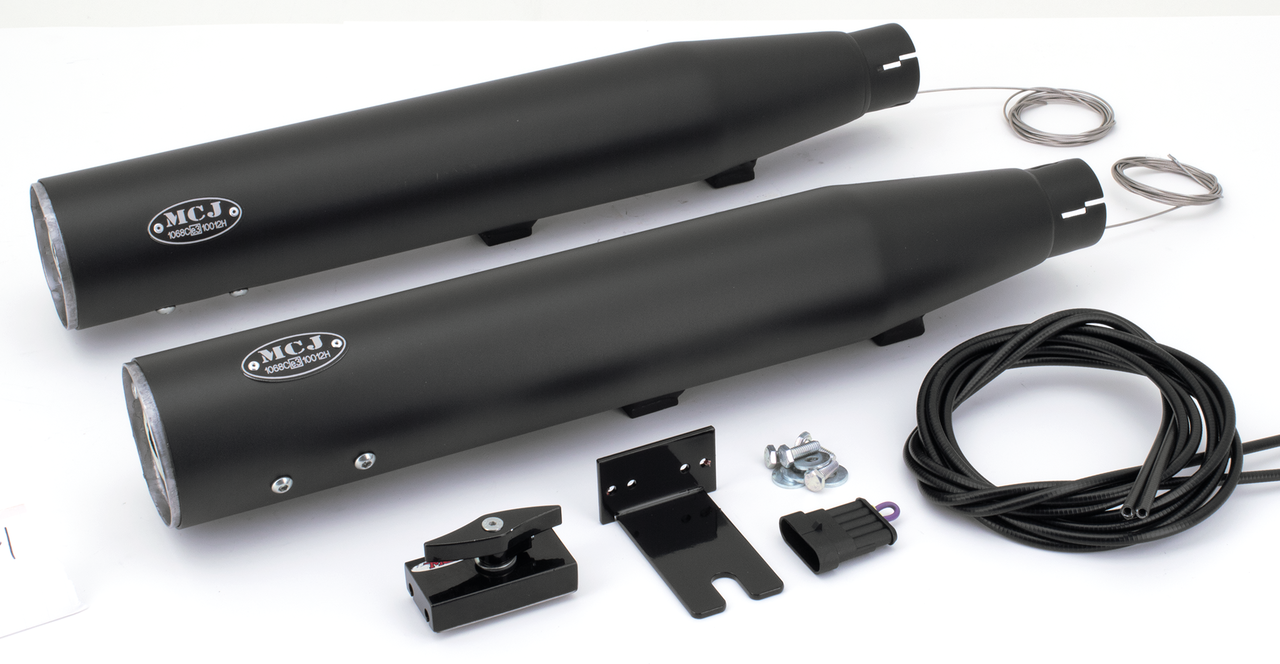 E-approved slip-ons with an adjustable exhaust valve that allows you to tune the sound of your bike the way you like it, but still get back to what is legal. These exhausts come complete with a manual operated adjusting lever that can be placed on either the handlebar or below the tank. Electric operated adjusting motors with a key fob style remote control are available as an option. Muffler end caps must be ordered separately.