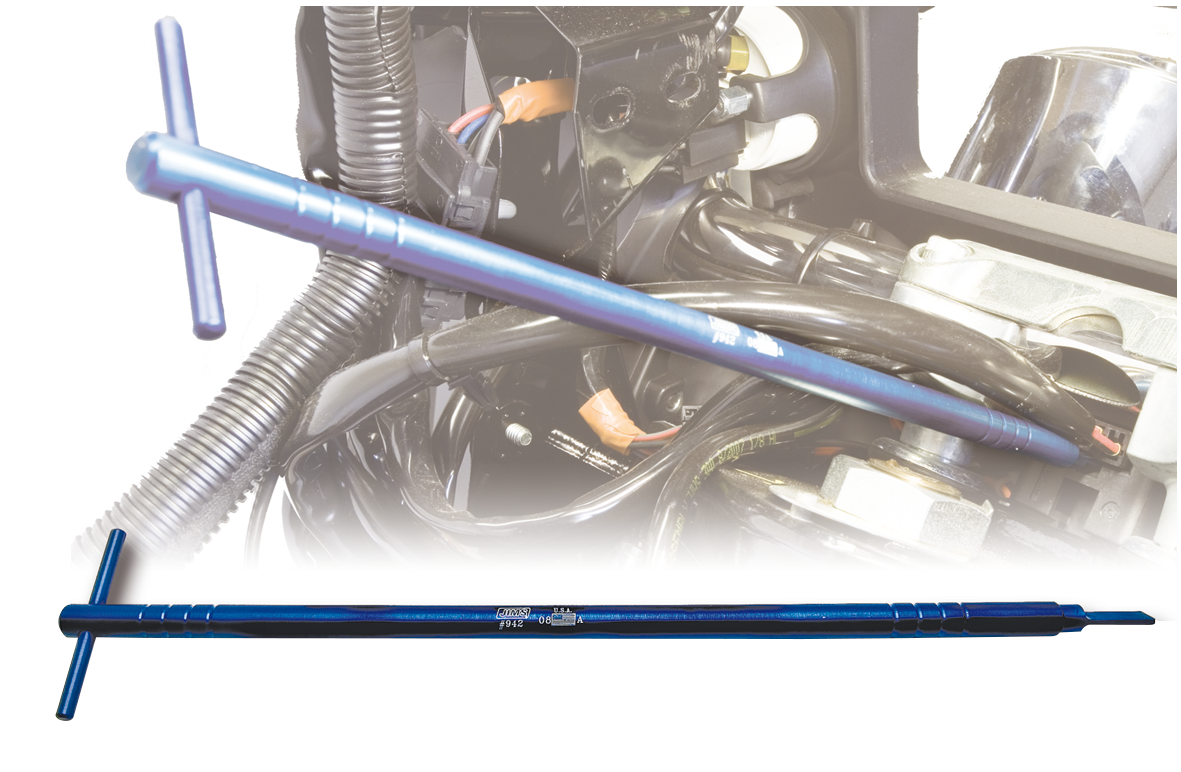 Use this tool to safely remove the ignition switch wiring connector. Slip the dog bone end of the tool into the bottom side of the connector until it is touching the back end of connector box. Then gently pull out the male wiring connector and tool. Use on Touring models 2003 thru 2013 that have a connector directly plugging into the ignition switch (OEM 71530-03) and all V-Rod 2002 thru 2017.