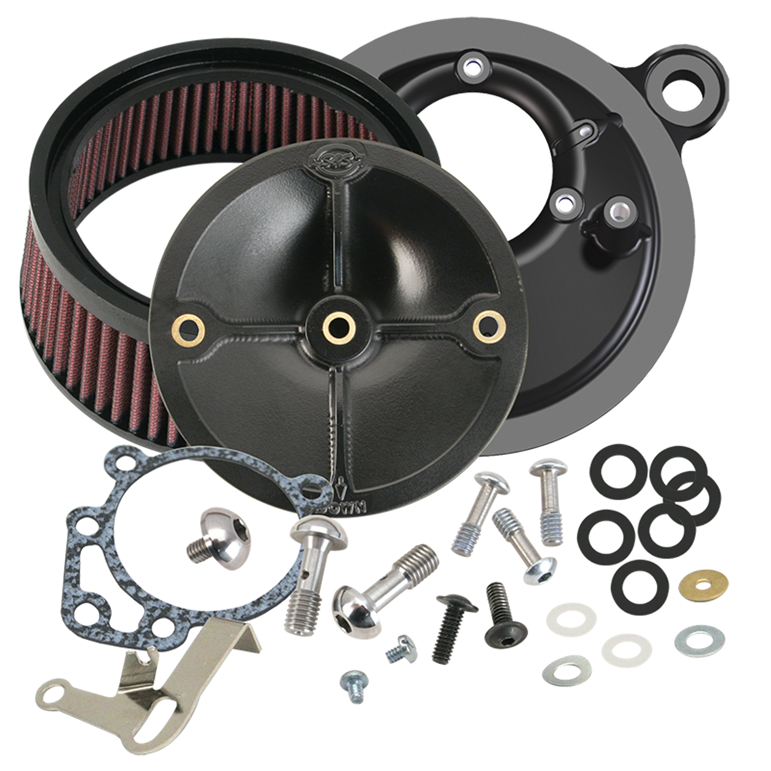 The S&S Stealth air cleaner has increased filter area, combined with a radiused inlet and unique S&S stinger that allows smoother, faster airflow for more power. The optional Air Stinger filter is for highly tuned and extremely large Big Bore engines. It takes the existing high flow Stealth air cleaner and replaces the air smoothing stinger with a similarly shaped filter element. More filter surface equals a 55% gain in airflow over a standard air filter in a Milwaukee Eight. Kits are easy to install and include backplate, filter element, top cover, hardware, and instructions.