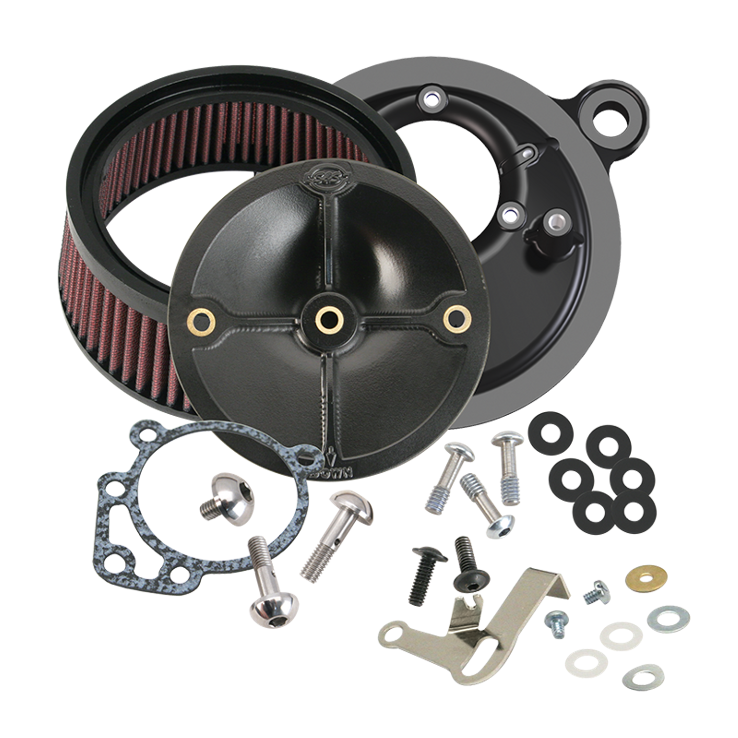 The S&S Stealth air cleaner has increased filter area, combined with a radiused inlet and unique S&S stinger that allows smoother, faster airflow for more power. The optional Air Stinger filter is for highly tuned and extremely large Big Bore engines. It takes the existing high flow Stealth air cleaner and replaces the air smoothing stinger with a similarly shaped filter element. More filter surface equals a 55% gain in airflow over a standard air filter in a Milwaukee Eight. Kits are easy to install and include backplate, filter element, top cover, hardware, and instructions.