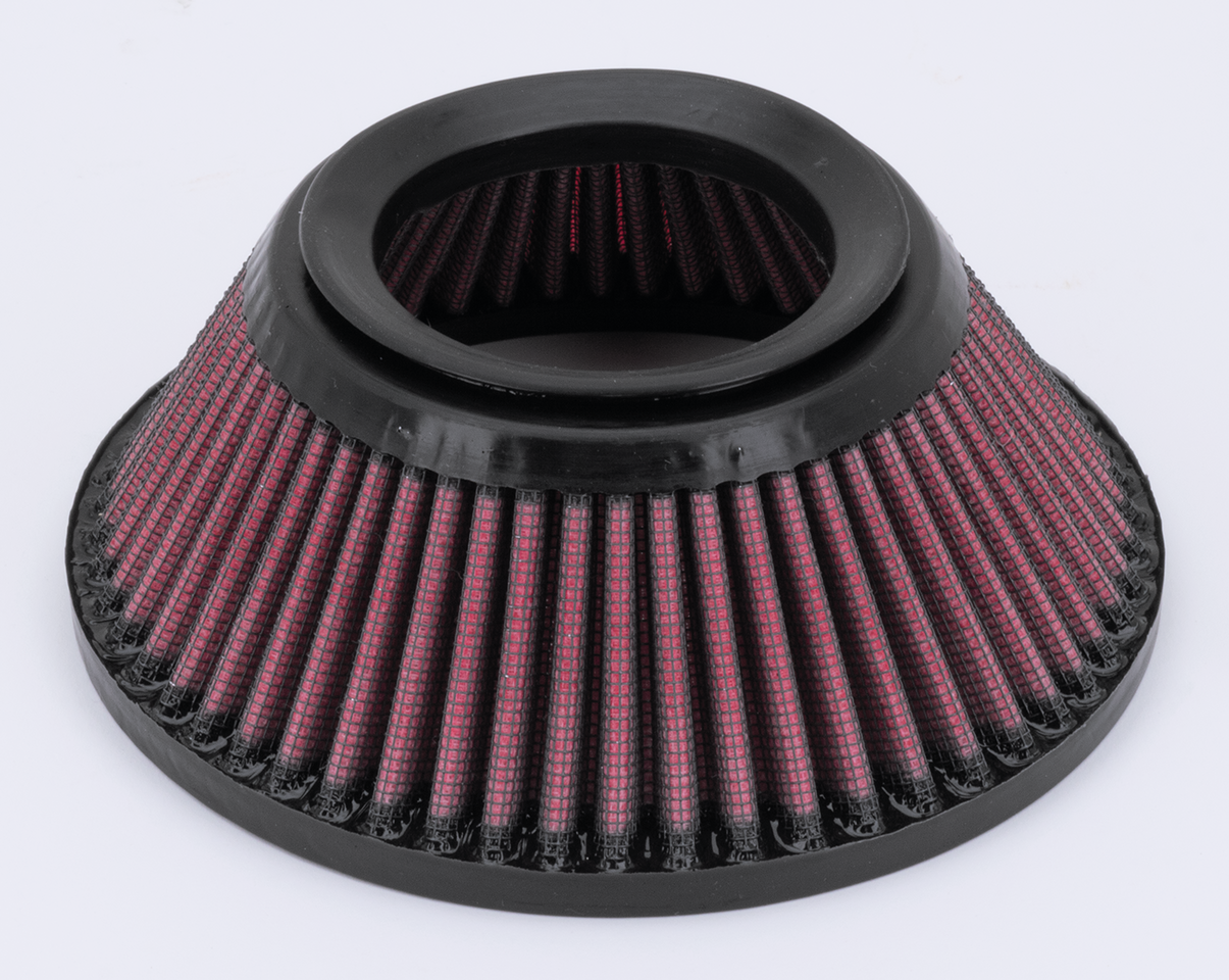 The Performance Machine MAX HP Air Cleaner isn't just another pretty bolt-on accessory that lacks substance. The newest addition to PM's air cleaner line-up features an innovative, conical shape for dramatically improved knee clearance, an internal power cone design for smooth, laminar air flow, plus a high flow reusable air filter to give it life. Lightweight aluminum design, internal rubber breather tubes to eliminate oil leakage and easy installation all support the MAX HP's stunning good looks. Made in the USA and available in chrome, black Contrast Cut that shows bare machined aluminum cuts, or PM's proprietary two-tone Black Ops that matches perfectly with Harleys stock black engine finish.