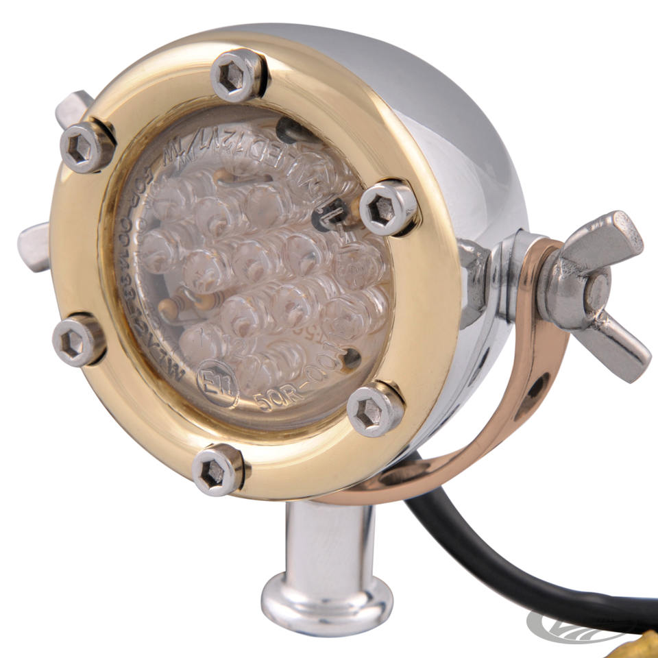 These E-approved tail lights are a great addition to any custom bike that wants a clean rear end, especially ones that already have the Chopper Kulture turn signals and/or headlight installed. Mounted with a single large bolt and bundled wiring, drilling 2 holes in your fender is all you need. Tail light measures 1.95" (50mm) overall diameter and 1.93" (49mm) deep.