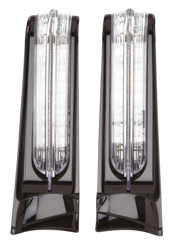 These Ciro Filler Panel Lights complete the rear end of many Touring models by filling the large unsightly gaps with a smooth, flowing chrome or black accent and LED light. This part dramatically increases visibility from the rear by incorporating ultra-bright turn signals along with low intensity running lights and high intensity brake lights. Check out the Saddlebag Extensions to really finish the rear end of your bike and create that full-custom look. Easy plug and play installation. Lights are DOT-compliant.