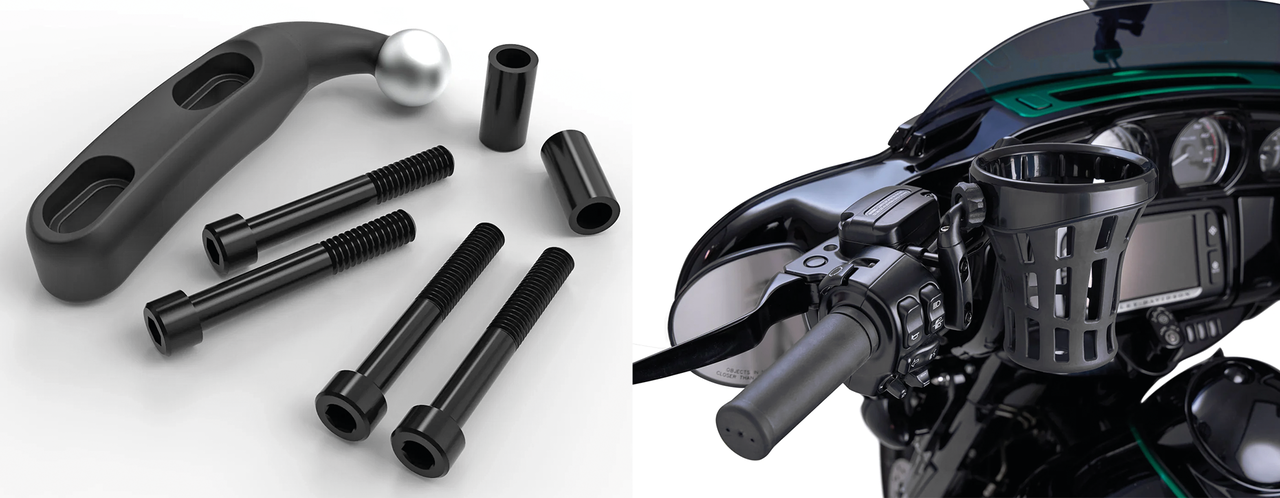The Ciro Cup & Holder is a clean and classy way to always have a drink at your fingertips. The insulated stainless steel cup keeps your drink cold or hot and the ring with tough neoprene rubber holds the cup securely. The neoprene rubber Drink Holder holds your drink secure with a contoured rubber net. Both holders provide infinite adjustment with Ciro ball mount design. Also available as 'Big Ass' holder for 30 Oz. (0.89 Litre) oversize containers.