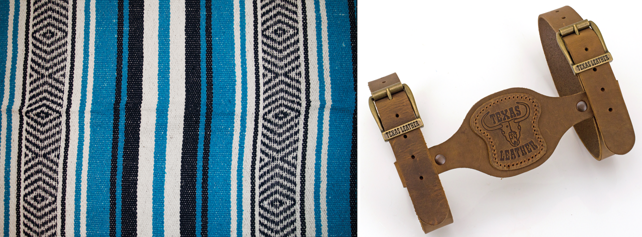 Authentic Made in Mexico sarapes, serapes, saltillos or Mexican blankets. Cozumel style blankets are made of an Acrylic with cotton and polyester blend, measuring 59"x84" (150x213cm). Veracruz style blankets are 100% Acrylic and measure 52"x80" (132x203cm). Available with or without Genuine Leather blanket holder that you can tie to your handlebars, sissy bar or you name it. Blanket holders have straps with 22" (56cm) useable length and can also be used for sleeping bags.