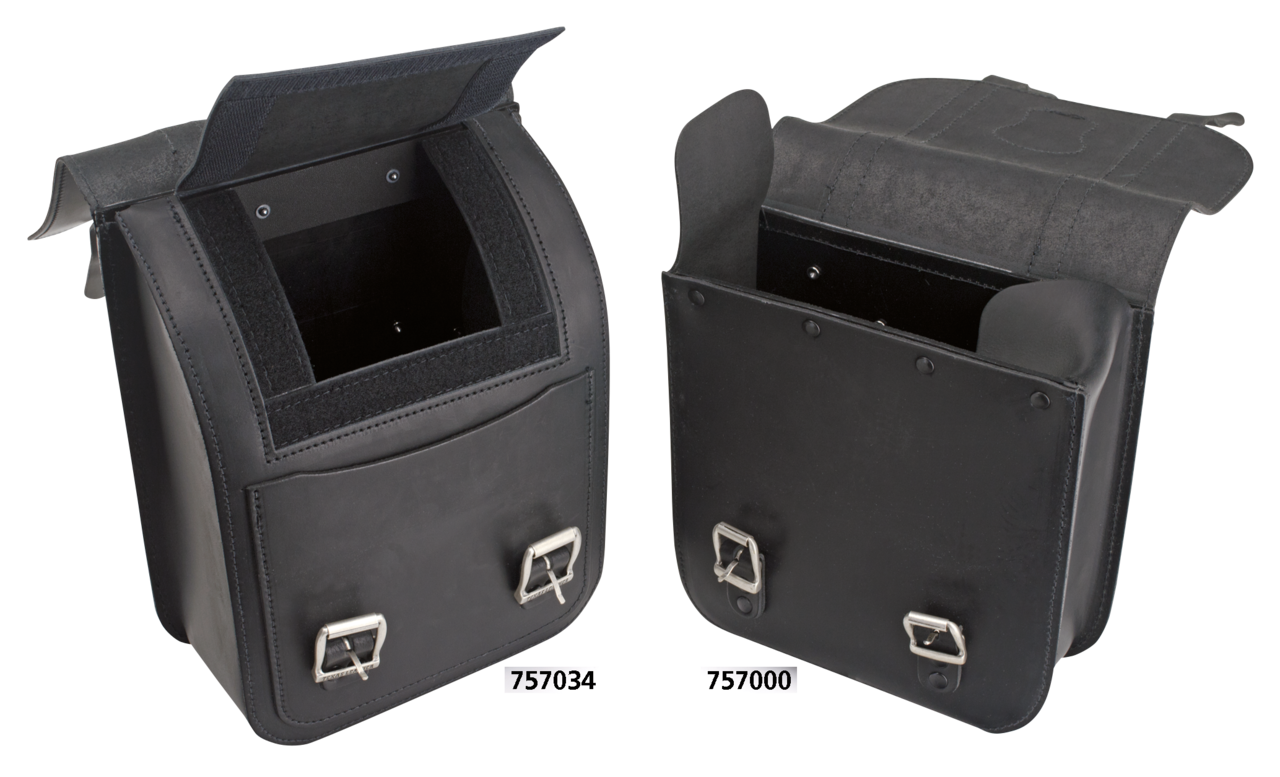 These Softail swing arm bags include straps to tie the bag to the left side of your swing arm are included. Available for most Softail models, except those with cross-over exhausts.