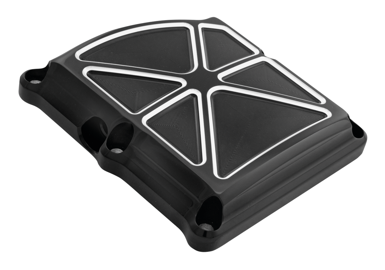 Billet aluminum top transmission covers made by Performance Machine in the USA are a direct replacement for the stock covers. Beautiful chrome plated or Contrast Cut, which shows machined bare aluminum accents. When you want these accents polished you order the Platinum Cut version. Black Ops is a gloss black on top of a contrasting textured black that is a perfect match with Harley's black wrinkle finish found on engines and transmissions.