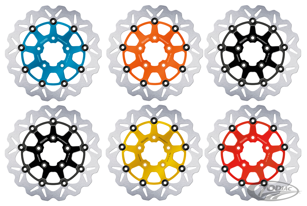 Increasing the disc outer diameter is one of the easiest ways to increase braking performance drastically. All you need is a bigger disc and a bracket that relocates the standard brake caliper to work with that bigger disc. Alternatively you can go for High Performance brake calipers that are designed for the larger diameter discs. Discs are sold each, caliper relocation brackets must be ordered separately. Minimalistic design brake discs for use with stock and stock-replacement calipers. As with every brake disc it is strongly recommended to install new brake pads with a new brake disc.