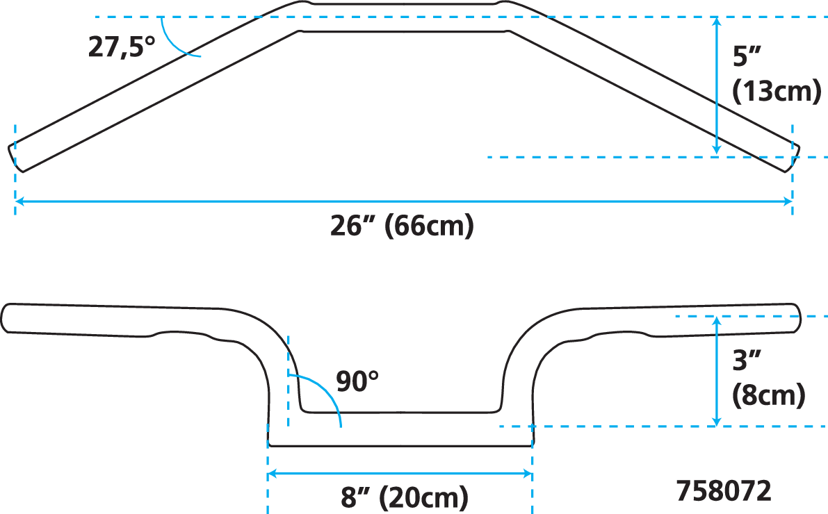 Top quality handlebars are precision made in Holland from 1" (25.4mm) heavy gauge steel tubing. Dimpled bars have indents to give space to route the handlebar switch control wires on Harley-Davidsons. Non-dimpled bars do not have this feature. All Zodiac Custom Products handlebars are designed for regular cable throttle but can easily be modified to accept Throttle-By-Wire.