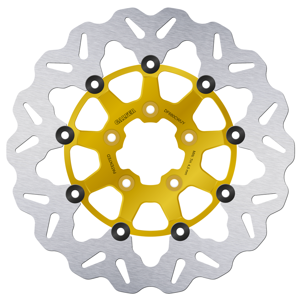 Galfer Wave floating discs offer precise and efficient braking and a significant weight saving. Unless differently indicated they feature black coated stainless steel floaters that attach the stainless steel band to the aluminum carrier. Discs are for use with stock and stock-replacement calipers. Discs are sold each, order two for dual disc applications. As with every brake disc it is strongly recommended to install new brake pads with a new brake disc.