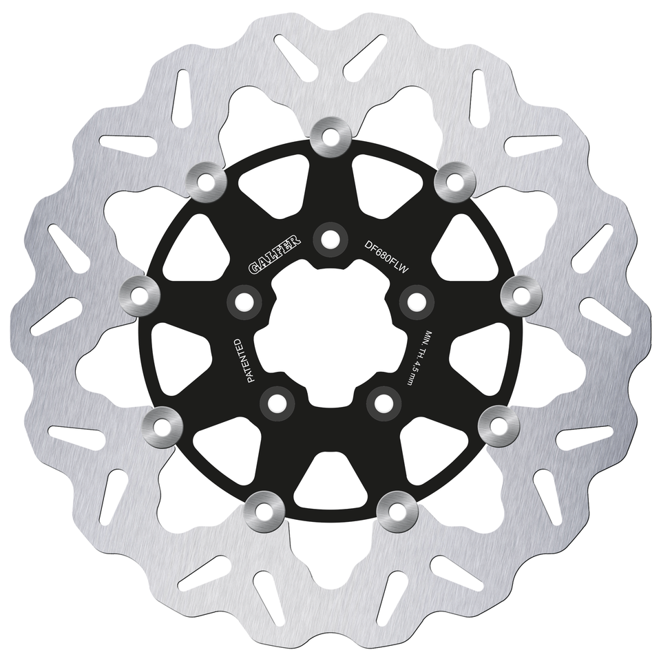 Galfer brake discs for use with stock and stock-replacement calipers. Full floating discs have stainless steel outer bands with black coated steel centers, held by and clear stainless floating elements. As with every brake disc it is strongly recommended to install new brake pads with a new brake disc.