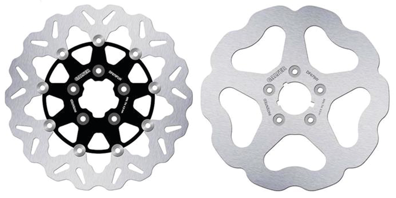 Galfer brake discs for use with stock and stock-replacement calipers. Full floating discs have stainless steel outer bands with black coated steel centers, held by and clear stainless floating elements. As with every brake disc it is strongly recommended to install new brake pads with a new brake disc.