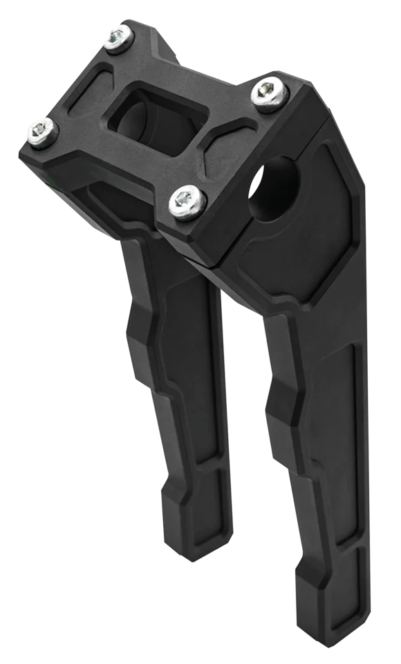 Billet aluminum risers with a black anodized finish are sold in sets for left and right. Risers are 10" (25.4cm) high and designed for 1" diameter handlebars. They are to be mounted using the stock riser bolts. Riser bolts are also available separately.